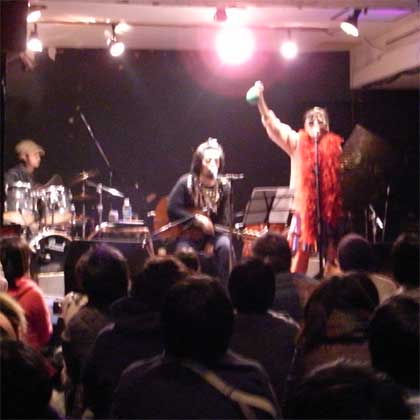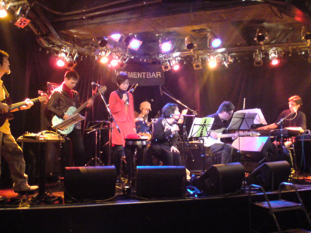 石橋英子(with オータコージ(Dr), 赤坂ミチル(Ba), 加藤雄一郎(Alto Sax), イナッチ(Tenor Sax), カッキー(Trumpet), 中村圭作(Key), アチコ(Cho), クリ(Cho))